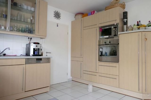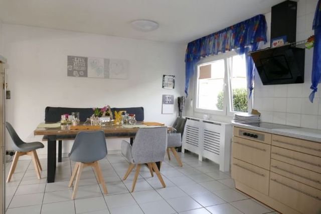 Weiter geht es in die geräumige Wohnküche. Sie ist bereits vollständig eingerichtet und wird auch den Ansprüchen anspruchsvoller Hobbyköche gerecht.