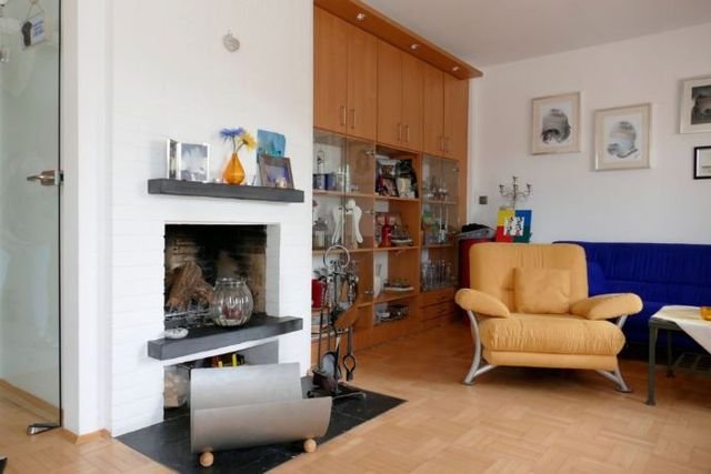 Der gemütliche Wohnbereich schließt sich direkt an und lässt sich perfekt einrichten. Hier ist ausreichend Platz für Ihre Bücherwand, eine großzügige Sofaecke und für die Kuschelecke am offenen Kamin - ideal für die kühleren Zeiten des Jahres.