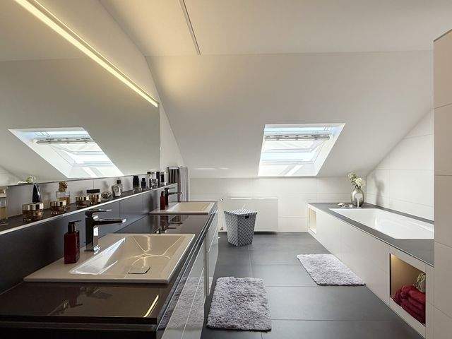 Im Dachgeschoss erwarten Sie ein großzügiges Schlafzimmer, eine Ankleide und ein weiteres Gäste- oder Arbeitszimmer. Das über 15 m² große Tageslichtbad wurde komplett hochwertig saniert und wird modernen Ansprüchen absolut gerecht. 6 Meter Einbauschränke im Flur bieten jede Menge Stauraum.
