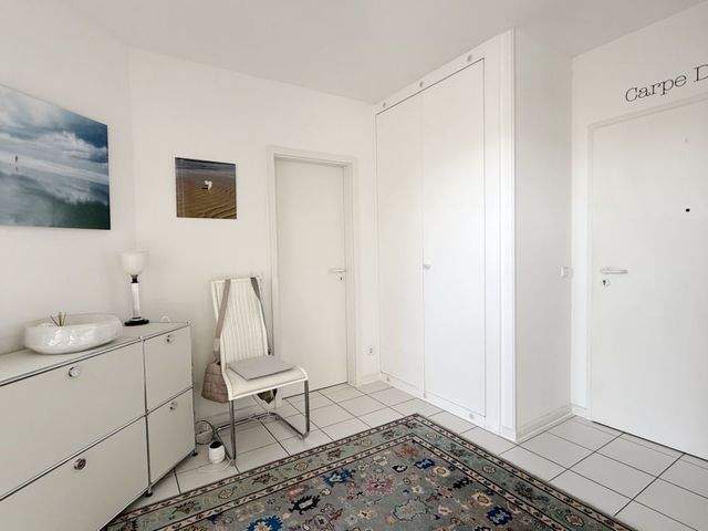 Ihren Wagen parken Sie auf einem der beiden, zu Ihrer Wohnung gehörenden Tiefgaragenstellplätze - von hier gelangen Sie trockenen Fußes über das gepflegte Granit-Treppenhaus zu Ihrer Maisonette-Wohnung im Dachgeschoss.