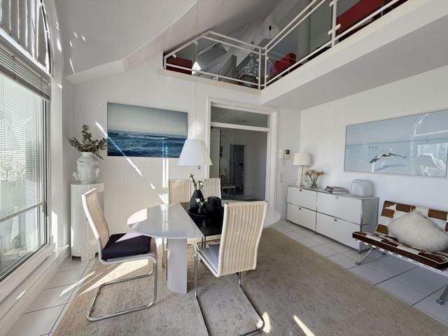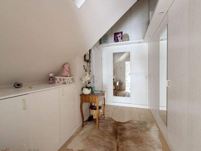 Über die luftige Treppe geht es zur Wohngalerie. Über 42 m² Wohnfläche warten darauf, von Ihnen neu eingerichtet zu werden. Hier findet sicherlich jedes Ihrer Lieblingsmöbelstücke seinen Platz. Über die komplett eingerichtete Ankleide erreichen Sie das großzügige Schlafzimmer und Ihr Masterbad en-Suite.