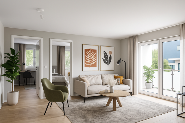 - Die Ausstattung der Wohnungen lässt keine Wünsche offen: Parkettböden auf wohliger Fußbodenheizung, große Fensterelemente, elektrische Rollläden, moderne Bäder, sonnige Balkone oder Terrassen (die Erdgeschosswohnungen erhalten einen kleinen Privatgarten), Glasfaser- und Kabelinternet mit bis zu 1 Gbit/s, sind die Highlights der Ausstattung.