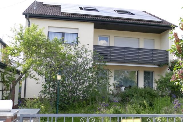- Das freistehende Zweifamilienhaus wurde 1973 als, in größten Teilen, massives Fertighaus von der Firma Gebert Fertighaus erstellt.